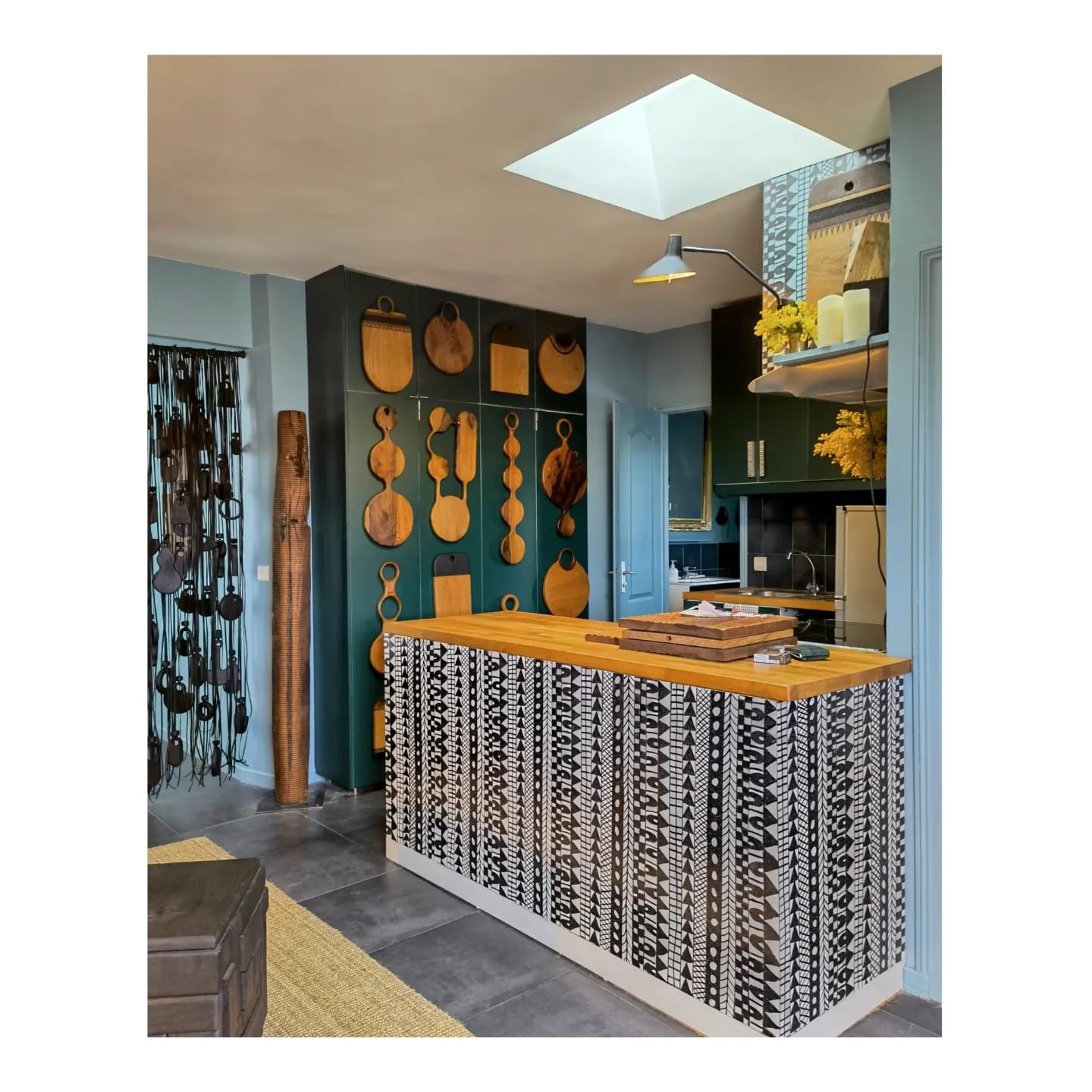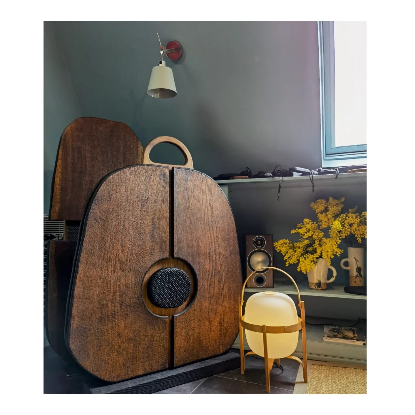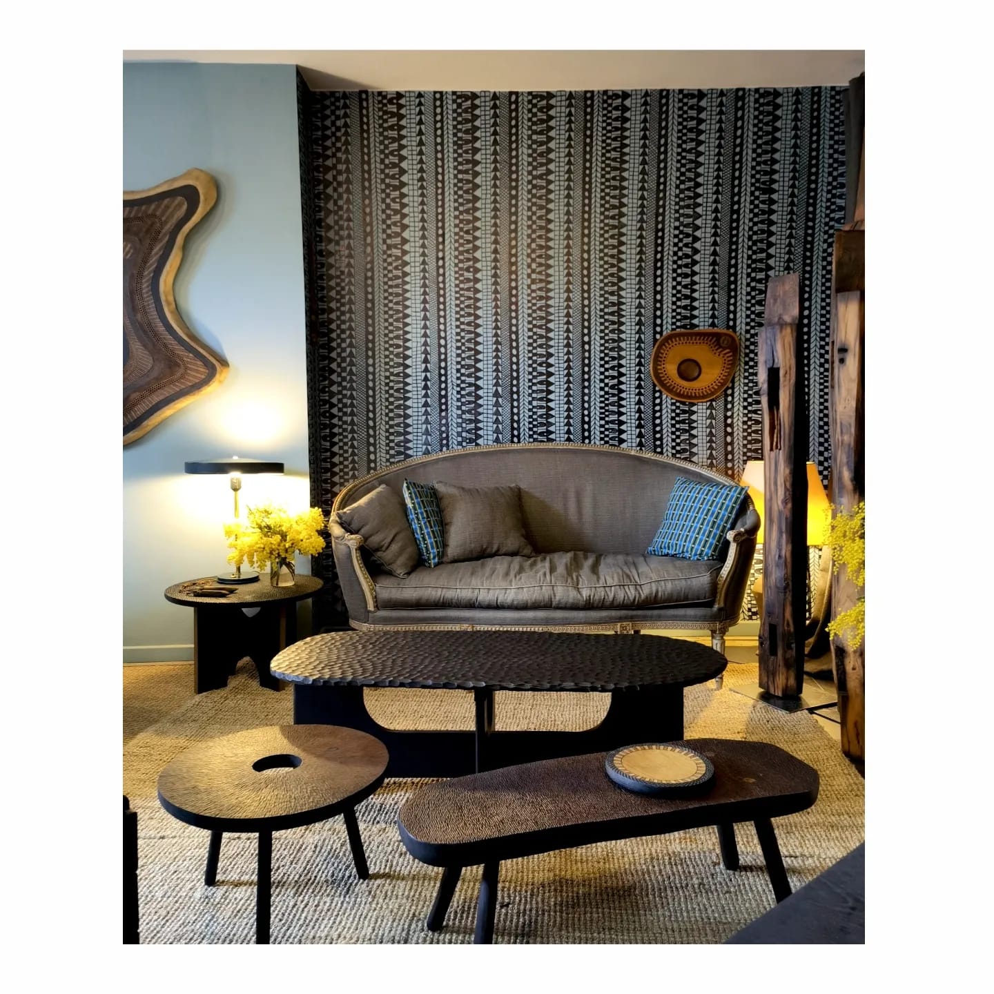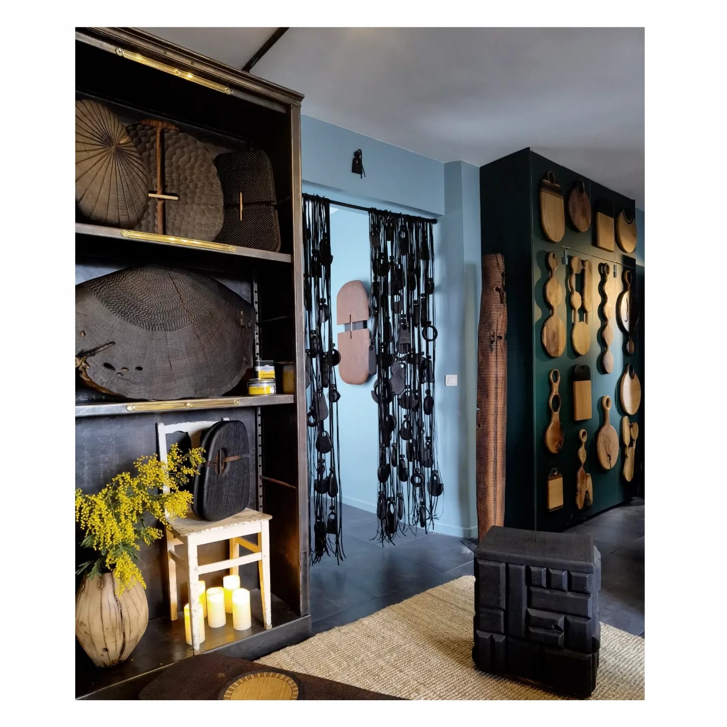 Ses pièces sont sculpturales, ethniques. Elles s’accrochent, se posent, se suspendent, se manipulent. Ses pièces se regardent, se touchent, s’éprouvent, se vivent.